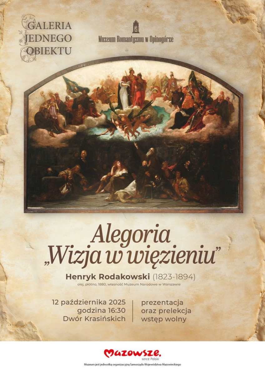 Po koncercie, o godz. 16.30, we Dworze Krasińskich w ramach Galerii Jednego Obiektu zaprezentowany zostanie obraz Henryka Rodakowskiego „Alegoria – Wizja w więzieniu”.