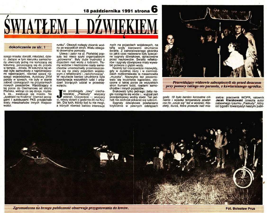 Kulminacją tego lata była zorganizowana 30 września 1991 roku przez "Tygodnik" akcja poszukiwawcza. Nad zalewem zebrało się kilka tysięcy osób – mieszkańców, turystów i reporterów. W akcji uczestniczyły wojsko, straż pożarna i WOPR. Wodę oświetlały reflektory, w gotowości czekali płetwonurkowie i weterynarz. Naukowcy – paleontolog Andrzej Domaradzki, oceanograf Krzysztof Marejczak i ichtiolog Piotr Klimański – na bieżąco komentowali wydarzenia. Paskuda się nie pojawiła, ale tej nocy Ciechanów naprawdę żył jednym tematem.