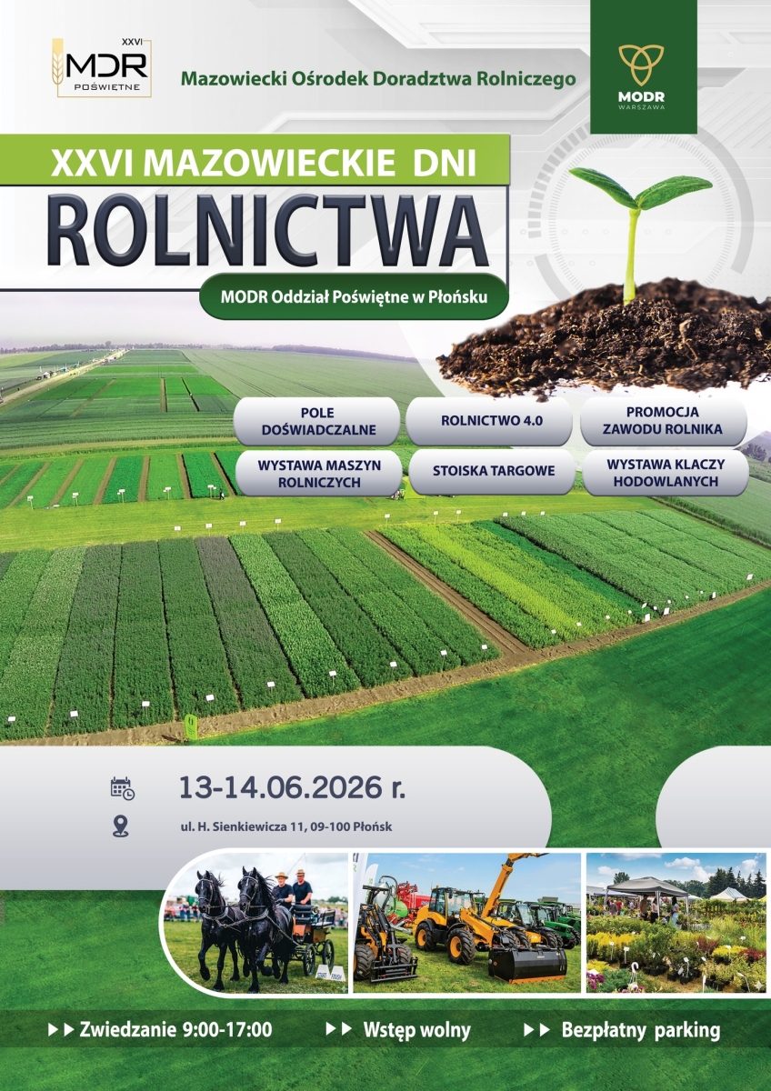 Jedno z najważniejszych wydarzeń rolniczych w Polsce – Mazowieckie Dni Rolnictwa, odbędą się 13 i 14 czerwca na terenie Mazowieckiego Ośrodka Doradztwa Rolniczego Oddział Poświętne w Płońsku.